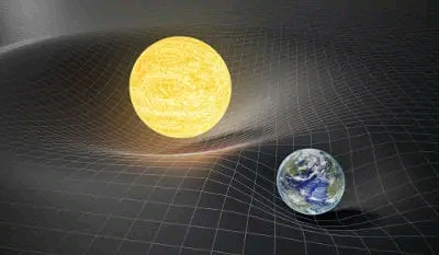 Ele disse que o espaço é que nem um tecido que ao colocarmos um objecto ele cria uma curvatura. sendo esta proporcional à massa do corpo. Assim, ele concluiu que: quanto maior for a massa de um determinado corpo, maior será a curvatura espaço-tempo. Como é ilustrado na imagem acima.