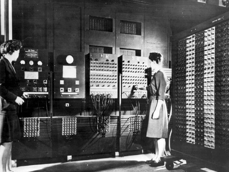 O Poderoso Eniac é a maior máquina de cálculo já construída. que funciona a base de cartões perfurados que eram perfurados pelos funcionários do exército. Ele era programado através de milhares de interruptores que podia assumir dois valores 1 ou 0 a mesma base de funcionamento dos computadores modernos usando o Código binário. Só que no Eniac o processo era manual necessitando de várias pessoas percorrendo as filas dos interruptores dando as instruções necessárias para que o cálculo seja feito